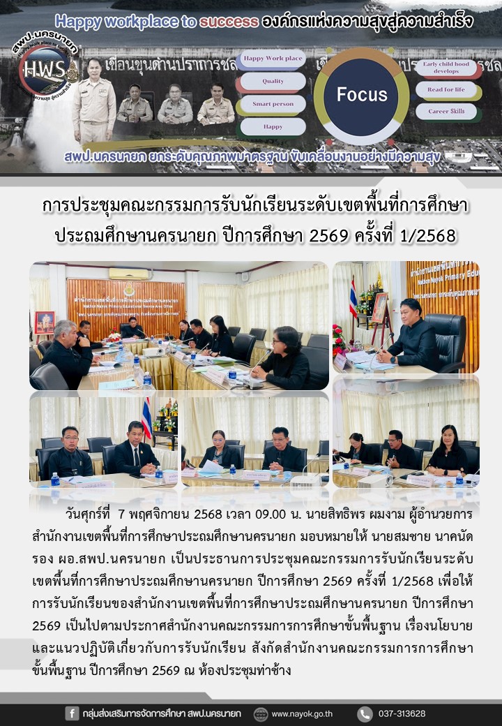 การประชุมคณะกรรมการรับนักเรียนระดับเขตพื้นที่การศึกษาประถมศึกษานครนายก ปีการศึกษา 2569