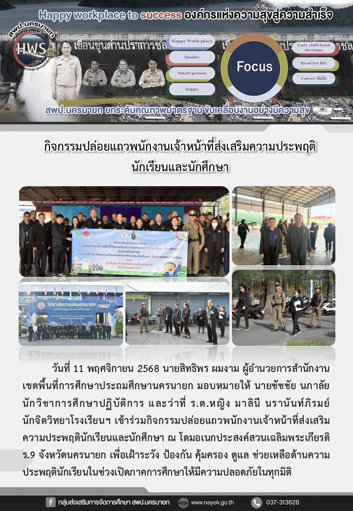 กิจกรรมปล่อยแถวพนักงานเจ้าหน้าที่ส่งเสริมความประพฤตินักเรียนและนักศึกษา